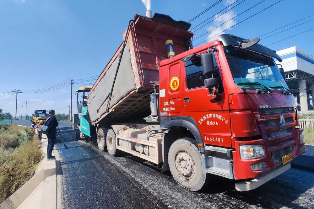 在甘肅省科技重大專(zhuān)項(xiàng)(創(chuàng)新聯(lián)合體)等項(xiàng)目支持下,唐志誠(chéng)團(tuán)隊(duì)從退役風(fēng)機(jī)葉片材料結(jié)構(gòu)和理化性質(zhì)出發(fā),利用退役風(fēng)機(jī)葉片質(zhì)輕、強(qiáng)度高、耐腐蝕等特點(diǎn),通過(guò)物理破碎和化學(xué)處理方式,將退役風(fēng)機(jī)葉片改性后在瀝青混合料和水泥混凝土中探索應(yīng)用。在與甘肅路橋善建科技有限公司的合作下,2024年9月,退役風(fēng)機(jī)葉片改性瀝青混合料在甘肅蘭州清傅公路輔路上得到了示范性鋪設(shè)。