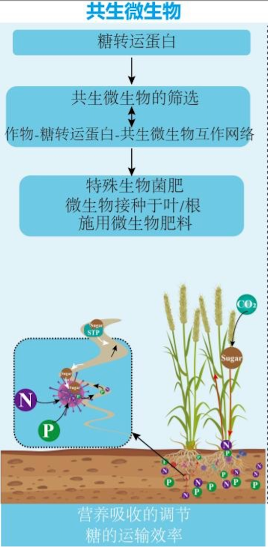 首先,增強糖轉運蛋白與共生微生物的相互作用是提高作物產量的重要策略之一。互惠微生物宛如一群微小卻神通廣大的“精靈”,與植物締結了緊密且精妙的共生契約?;セ菸⑸锟梢詾橹参锾峁└嗟臓I養(yǎng)物質如氮、磷、鉀;植物則為微生物提供更多的糖分,二者互利共贏。糖轉運蛋白就像互惠微生物的“補給車”,負責它的能量補給。通過這一策略,可以幫助植物更好地吸收土壤中的養(yǎng)分,比如磷和氮。這就像給植物吃了“營養(yǎng)補品”,讓它們長得更壯實。