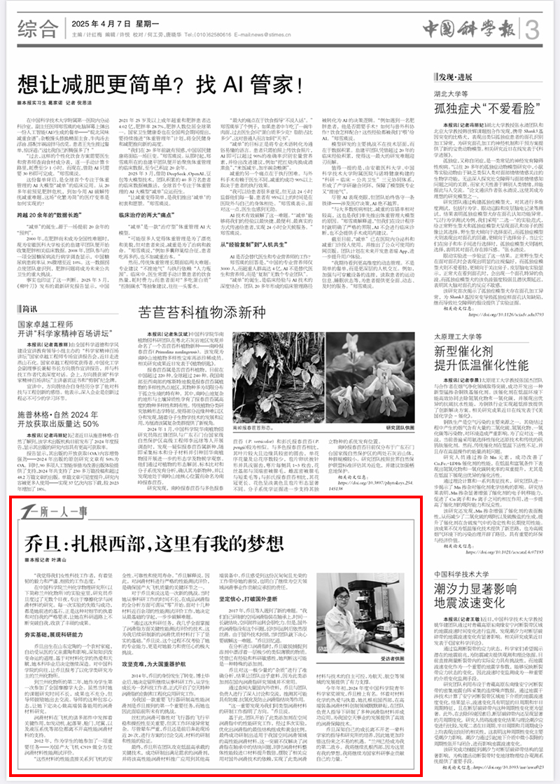【中國(guó)科學(xué)報(bào)】喬旦:扎根西部,這里有我的夢(mèng)想