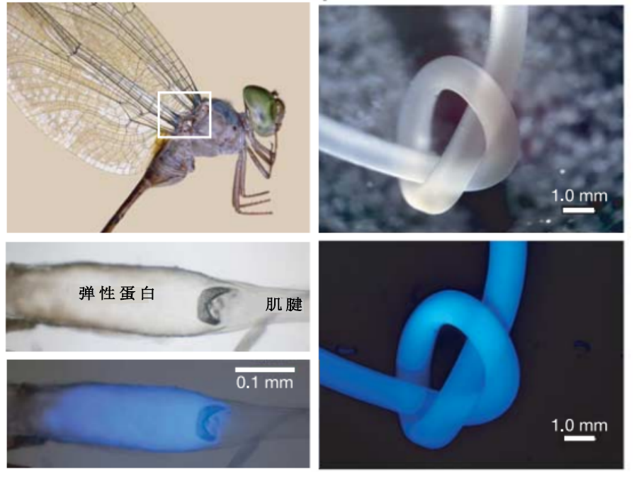 你或許沒注意過,蜻蜓是飛行界的“超級(jí)跑車”——它們翅膀振動(dòng)的頻率可以高達(dá)每秒數(shù)百次,一旦振翅,它幾乎可以懸停、俯沖、急轉(zhuǎn)彎,靈活得像一架無人機(jī)。它是怎么做到的?秘訣就在于它翅膀里隱藏的一種神奇材料:節(jié)肢彈性蛋白(Resilin)。這是一種近乎完美的天然彈性材料,彈性接近100%,可以反復(fù)形變幾百萬次都不會(huì)疲勞斷裂,簡(jiǎn)直是“自然界的超級(jí)橡膠”。