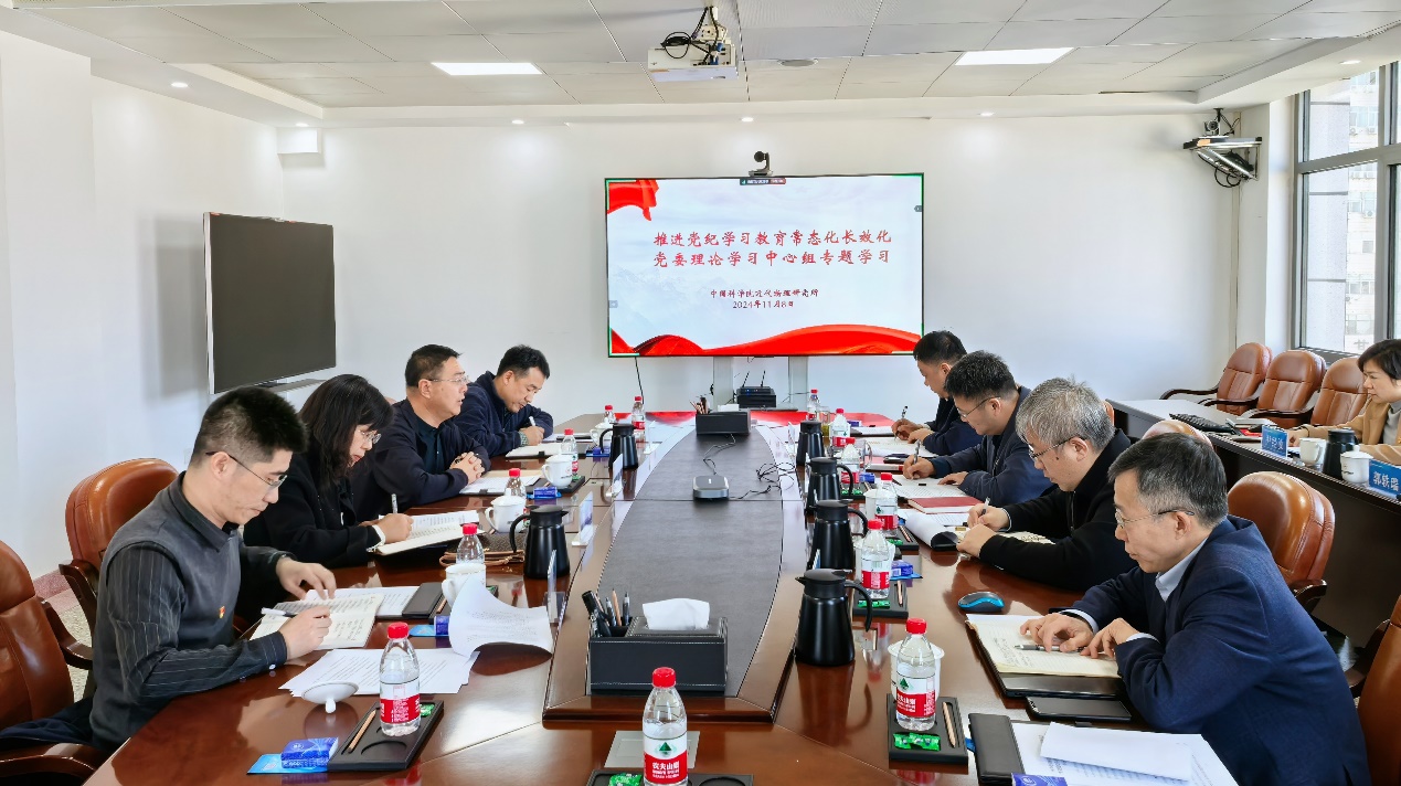 會上,胡正國以《建立健全黨紀學習教育常態(tài)化長效化機制,以嚴明黨紀為搶占科技制高點凝神聚力》為題作專題學習報告,帶領中心組成員集體學習了習近平總書記重要指示精神和黨中央、院黨組相關文件精神,回顧了研究所扎實開展黨紀學習教育情況,總結有益經驗,查找問題不足,并對推進研究所黨紀學習教育常態(tài)化長效化進行了部署,明確了工作思路和職責分工。