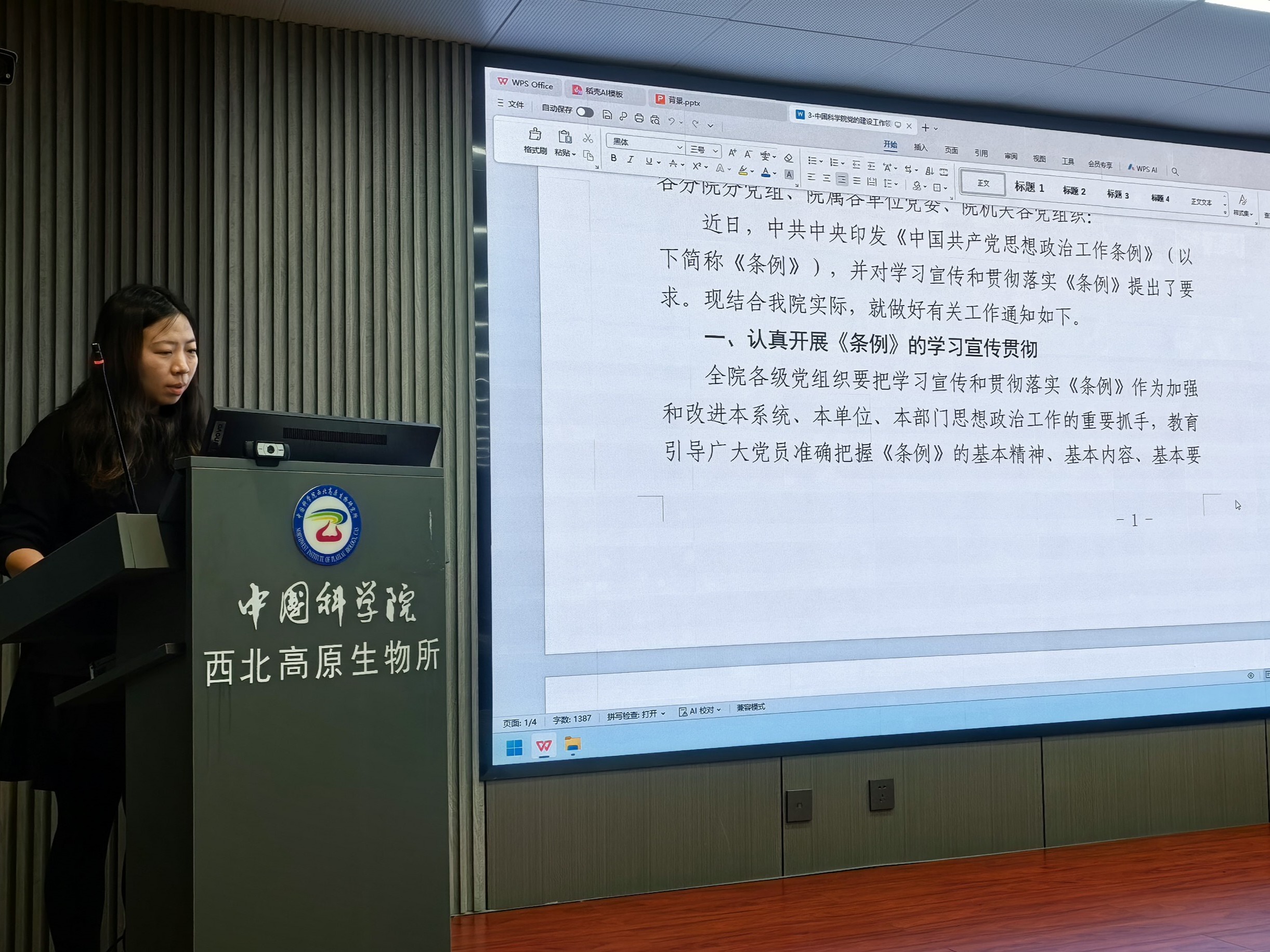 西北高原所資源中心黨支部召開支部大會(huì)傳達(dá)學(xué)習(xí)貫徹黨的二十屆四中全會(huì)精神