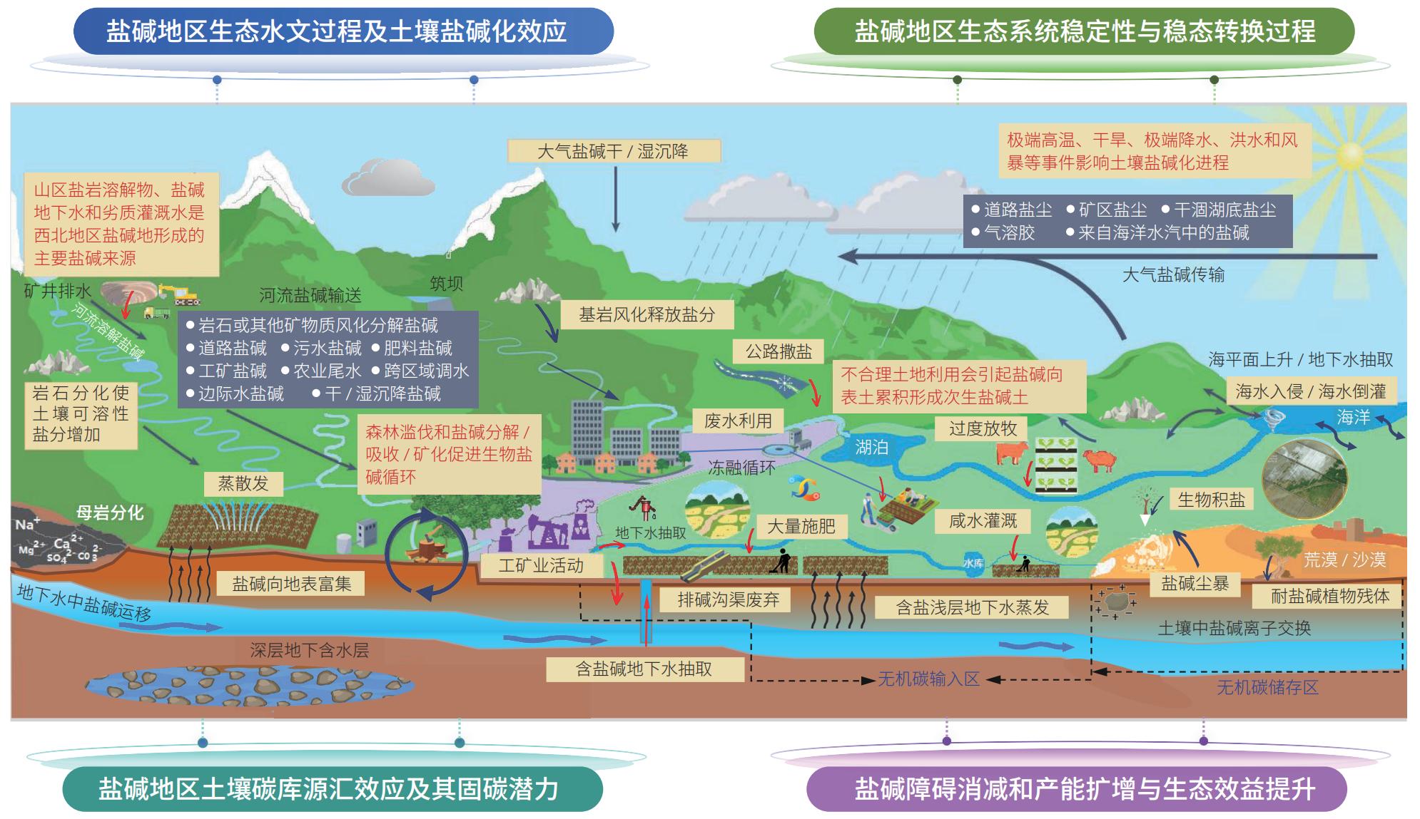 中國工程院院士馮起團(tuán)隊(duì)基于多年西北地區(qū)生態(tài)環(huán)境保護(hù)、資源開發(fā)利用的研究與實(shí)踐,系統(tǒng)梳理了西北地區(qū)鹽堿地資源數(shù)量、分布規(guī)律和潛力狀況,以及鹽堿地變化趨勢、鹽堿化演變過程和改良治理成效,分析了統(tǒng)籌推進(jìn)西北地區(qū)鹽堿地綜合治理利用面臨的問題與挑戰(zhàn),凝練了未來西北地區(qū)鹽堿地與土壤鹽堿化研究的重點(diǎn)方向與關(guān)鍵科學(xué)問題,提出了統(tǒng)籌推進(jìn)西北地區(qū)鹽堿地綜合治理利用的相關(guān)對策與建議。