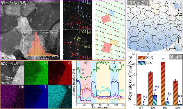圖1.納米分級異質(zhì)晶粒結(jié)構(gòu)Ni50(AlNbTiV)50合金及其寬溫域耐磨損性能
