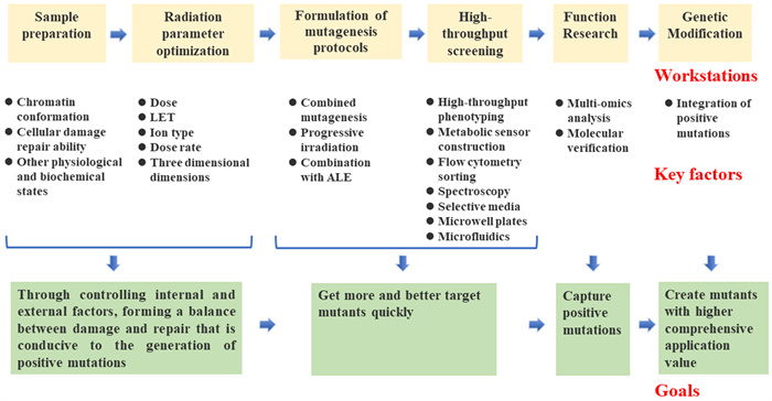 科研人員利用重離子輻射誘變育種技術選育了大量優(yōu)良突變體,但誘變技術普遍存在的隨機性也是其不可回避的難題,從而限制了優(yōu)良突變體的快速獲取?;诖爽F(xiàn)狀,科研人員通過總結現(xiàn)有理論和技術研究成果,沿重離子輻射誘變育種全規(guī)程提出了一整套串聯(lián)策略,如優(yōu)化輻射參數(shù)、調節(jié)細胞內在狀態(tài)、使用高通量篩選體系、聯(lián)合其他育種方法、精準識別正向突變、基于遺傳操作整合正向突變等方式以獲取高質量的突變體。