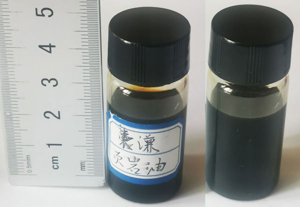 中國(guó)科學(xué)院青海鹽湖研究所馬海州研究員研究團(tuán)隊(duì),多年來(lái)持續(xù)在青海省玉樹(shù)州囊謙縣含鹽盆地開(kāi)展研究工作,由于油-鹽共生是普遍的地質(zhì)現(xiàn)象,在考察古近紀(jì)貢覺(jué)組含鹽地層過(guò)程中,課題組在囊謙盆地多處發(fā)現(xiàn)了厚層優(yōu)質(zhì)油頁(yè)巖,采集的油頁(yè)巖樣品可直接點(diǎn)燃(圖1)。近日,課題組自主設(shè)計(jì)了油頁(yè)巖干餾的實(shí)驗(yàn)裝置,并在干餾實(shí)驗(yàn)中成功獲得了頁(yè)巖油(圖2),目前利用青藏高原的油頁(yè)巖開(kāi)展干餾實(shí)驗(yàn)研究國(guó)內(nèi)外尚未見(jiàn)報(bào)道。干餾所獲得的頁(yè)巖油經(jīng)中國(guó)科學(xué)院西北生態(tài)環(huán)境資源研究院油氣研究中心吳應(yīng)琴研究員和青海大學(xué)祁昭林博士分析,其族分為瀝青質(zhì)占0.53%、飽和烴占18.83%、芳烴占12.83%、非烴占67.67%,與我國(guó)撫順、茂名和美國(guó)綠河及愛(ài)沙尼亞的油頁(yè)巖干餾頁(yè)巖油類似。頁(yè)巖油經(jīng)過(guò)加工精制,除了可以得到汽油、柴油、煤油外,還可以獲得石蠟、酚類等化工副產(chǎn)品。