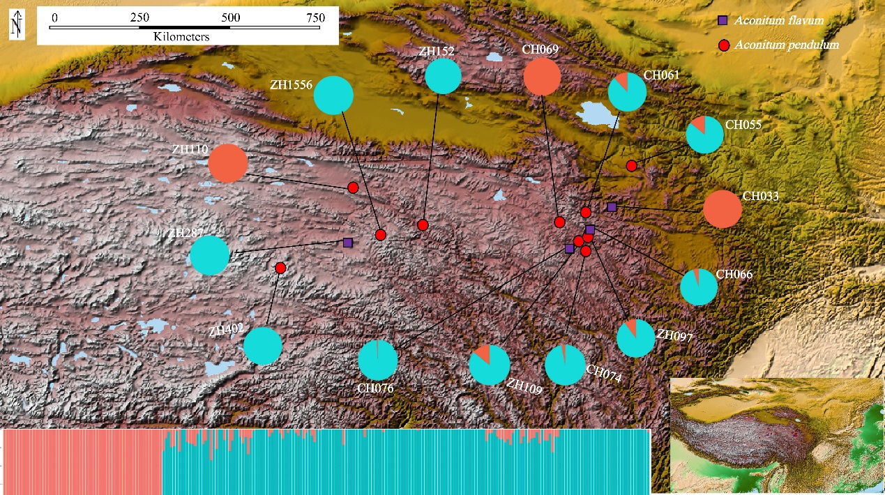 研究結(jié)果以?Population genetics and ecological niche modelling shed light on species boundaries and evolutionary history of Aconitum pendulum and A. flavum?為題發(fā)表在?Flora?上。西北高原所碩士研究生李強(qiáng)為該論文第一作者,張發(fā)起研究員為通訊作者。