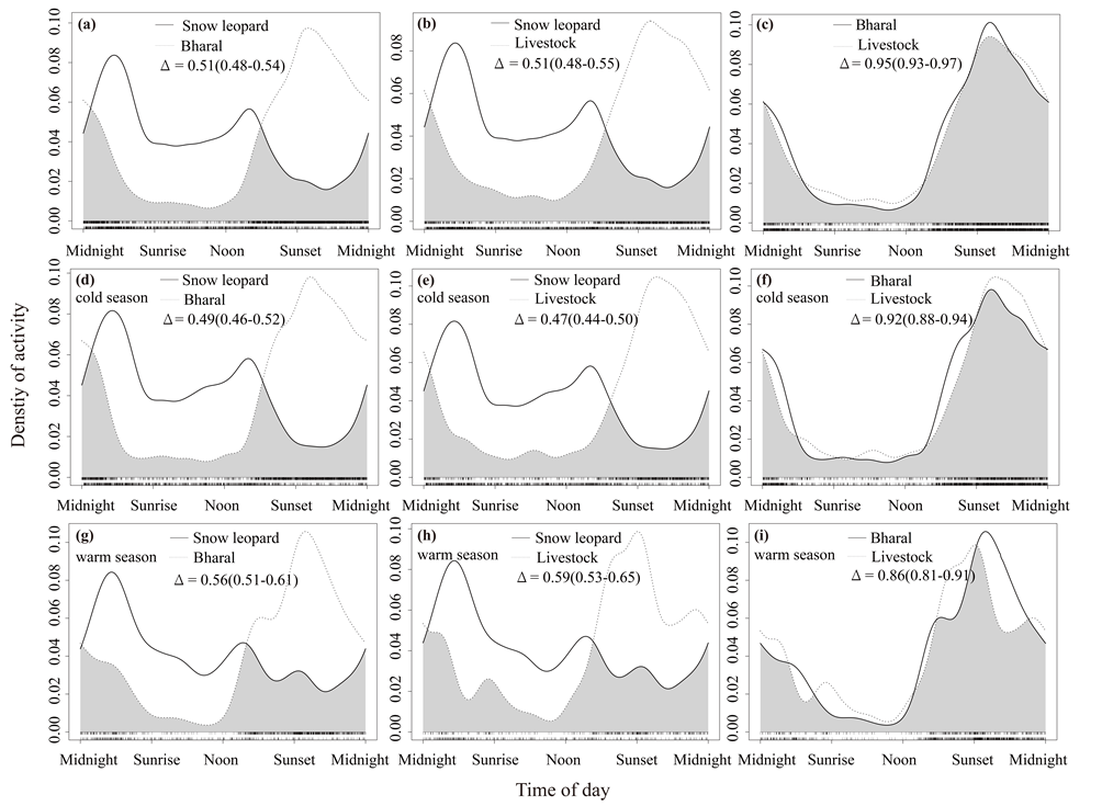 雪豹、巖羊和家畜的活動時間重疊