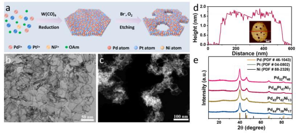 甲醇、乙醇等儲能小分子作為燃料的直接醇類燃料電池,具有能量密度高、工作溫度低、環(huán)境友好、燃料儲存和填充方便等優(yōu)點。電催化劑作為電催化反應(yīng)的核心,對提高燃料電池的效率起著重要作用。然而,目前開發(fā)的催化劑大多動力學遲緩,并涉及多電子轉(zhuǎn)移過程的陽極醇氧化反應(yīng)。以Pt和Pd為代表的鉑族金屬表現(xiàn)出良好的催化效果,但在提高其固有活性和穩(wěn)定性的同時還需要進一步降低成本。多孔納米結(jié)構(gòu)可進一步增加比表面積和孔體積,從而最大限度地提高反應(yīng)物分子的有效傳質(zhì)能力和納米級電催化劑內(nèi)的電子遷移率。因此,調(diào)控超薄鉑基或鈀基合金的孔隙,有望成為最大化本征催化活性和穩(wěn)定性的新途徑。