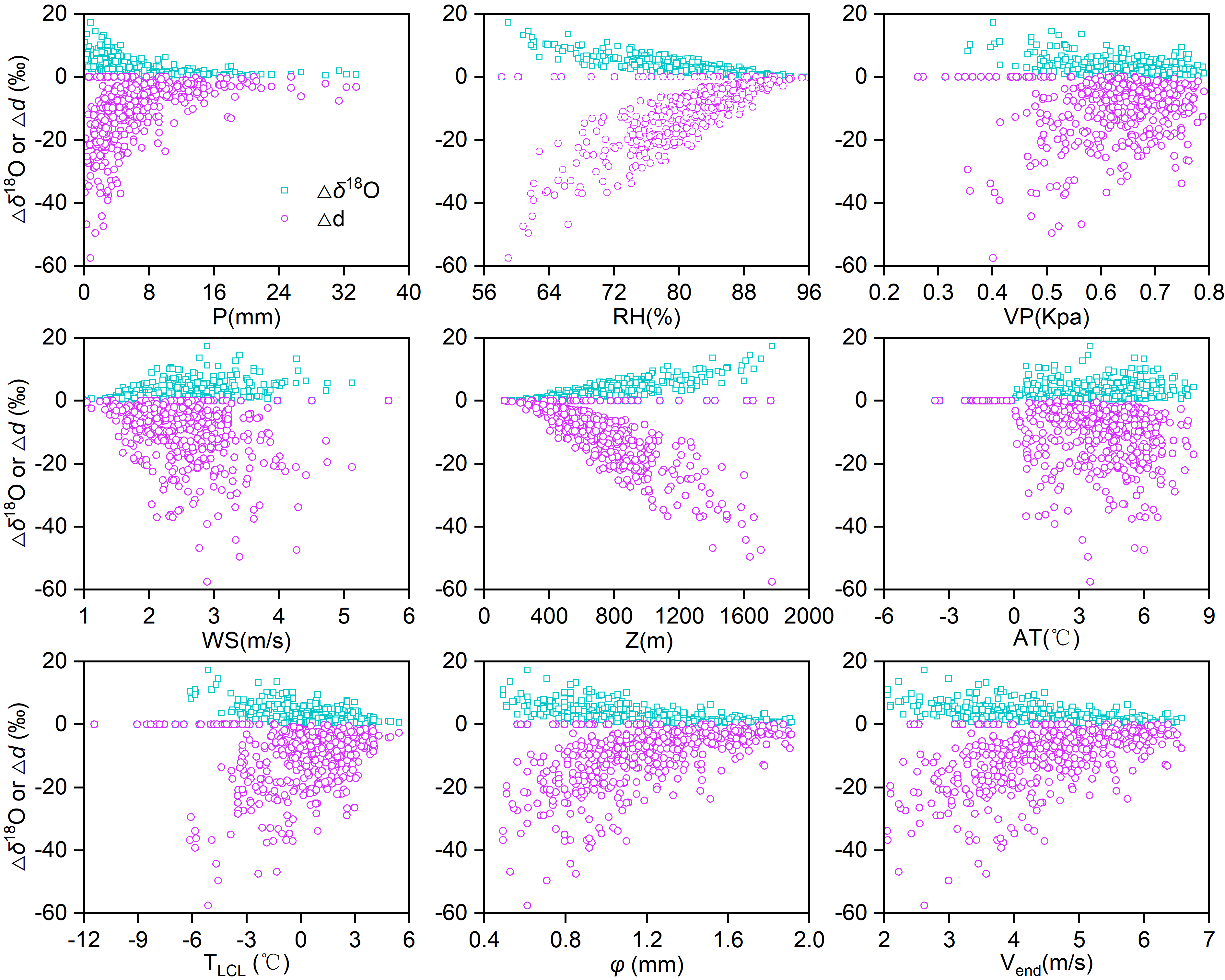 Δδ1?O和Δd與各氣象因子的關系