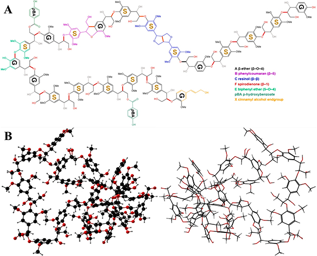 圖 1. 果實木質(zhì)素的二維(A)和三維(B)結(jié)構(gòu)