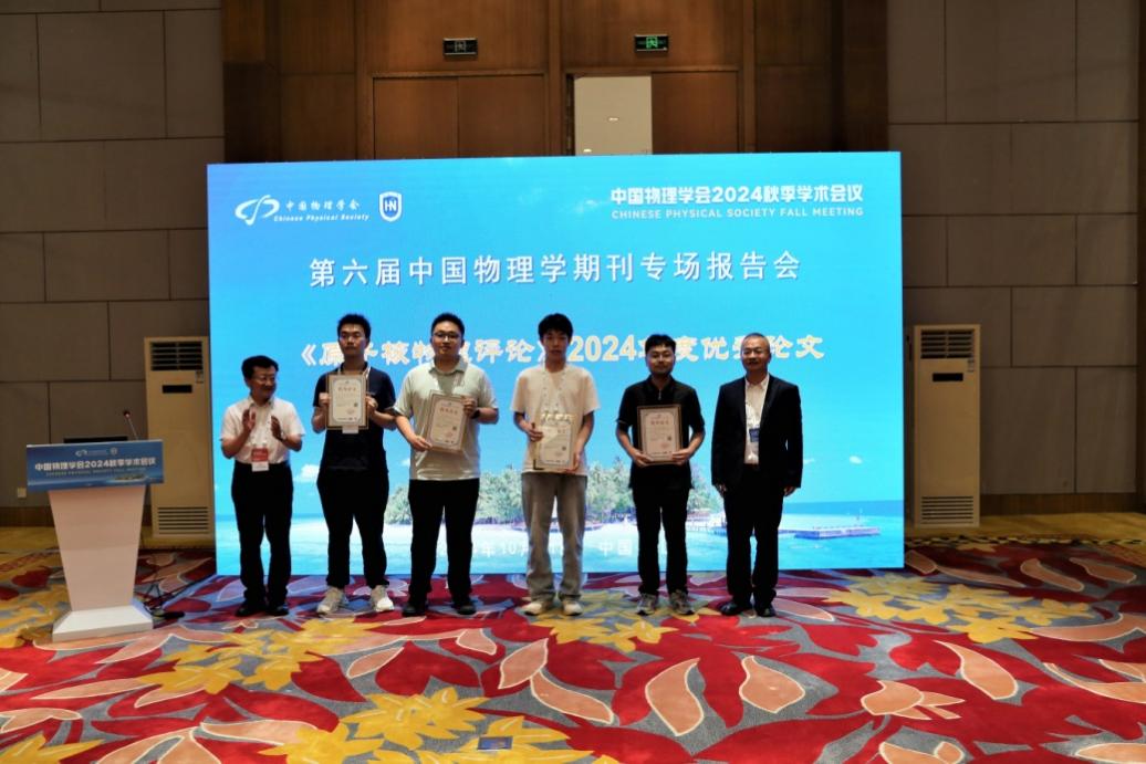 中國物理學期刊專場報告會已連續(xù)舉辦五屆。本屆專場報告會由中國物理學會出版工作委員會主辦,中國科學院物理研究所/海南大學承辦,《物理學報》《中國科學: 物理學 力學 天文學》《科學通報》《原子核物理評論》等20多家國內物理學相關期刊共同舉辦?!对雍宋锢碓u論》編輯部首次參加此項專題活動。近代物理所黨委原書記趙紅衛(wèi)院士、副所長王猛研究員為獲得《原子核物理評論》2024年度優(yōu)秀論文的作者代表頒獎。中國科學技術大學杰出講席教授、上海科技大學校長封東來院士、近代物理所趙紅衛(wèi)院士以及物理研究所曹則賢研究員分別做了特邀報告。