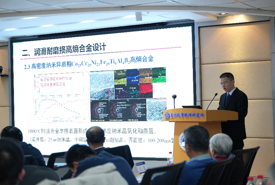 蘭州化物所所長、潤滑材料重點(diǎn)實驗室主任周峰研究員作了2024年度實驗室工作報告。詳細(xì)介紹了2024年實驗室重組和黨建創(chuàng)新文化建設(shè)情況,匯報了實驗室在科研成果、平臺建設(shè)、人才引進(jìn)與培養(yǎng)、產(chǎn)業(yè)化等方面取得的成績和存在的問題與思考,提出了2025年工作重點(diǎn)及目標(biāo)。隨后,程軍研究員和張耀明研究員分別作了題為“潤滑耐磨損高熵合金的設(shè)計研究”和“形狀記憶聚合物創(chuàng)制及其智能響應(yīng)應(yīng)用”的學(xué)術(shù)報告。