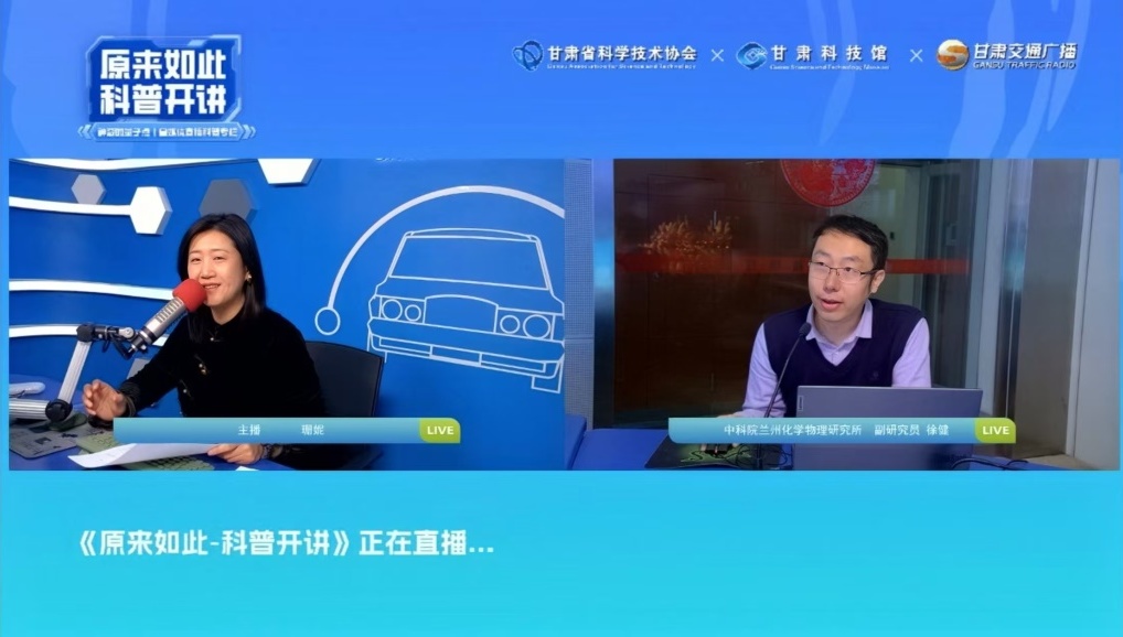 12月13日,中國科學(xué)院蘭州化學(xué)物理研究所徐健副研究員受邀在甘肅交通廣播《原來如此—科普開講》欄目開展了線上直播科普講座。