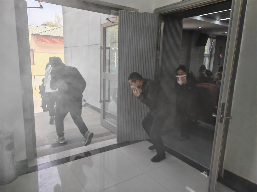 理論培訓(xùn)后,參訓(xùn)人員在政安消防工作人員指導(dǎo)下開展實戰(zhàn)演練。模擬場景設(shè)定為學(xué)術(shù)報告廳因電路短路引發(fā)火情,濃煙迅速蔓延。隨著警報響起,應(yīng)急指揮組立即啟動預(yù)案,疏散引導(dǎo)員按分工組織人員低姿捂鼻,沿安全通道撤離至指定集合點。隨后,又組織人員使用干粉滅火器對模擬火源進行撲滅。整個演練過程響應(yīng)迅速、分工明確,快速進行安全疏散。