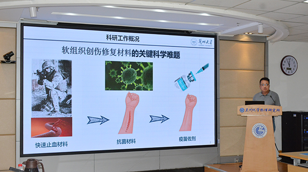 趙光輝作了題為“組織修復(fù)用生物醫(yī)用材料”的報(bào)告,聚焦高效動(dòng)脈止血材料研發(fā)與構(gòu)效關(guān)系研究,分享了在組織修復(fù)用高分子生物材料、殼聚糖止血粉、新型疫苗佐劑方面的最新研究成果與應(yīng)用。