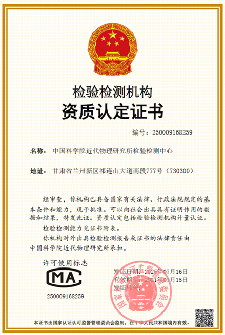 近代物理所檢驗(yàn)檢測(cè)中心通過CMA資質(zhì)認(rèn)定