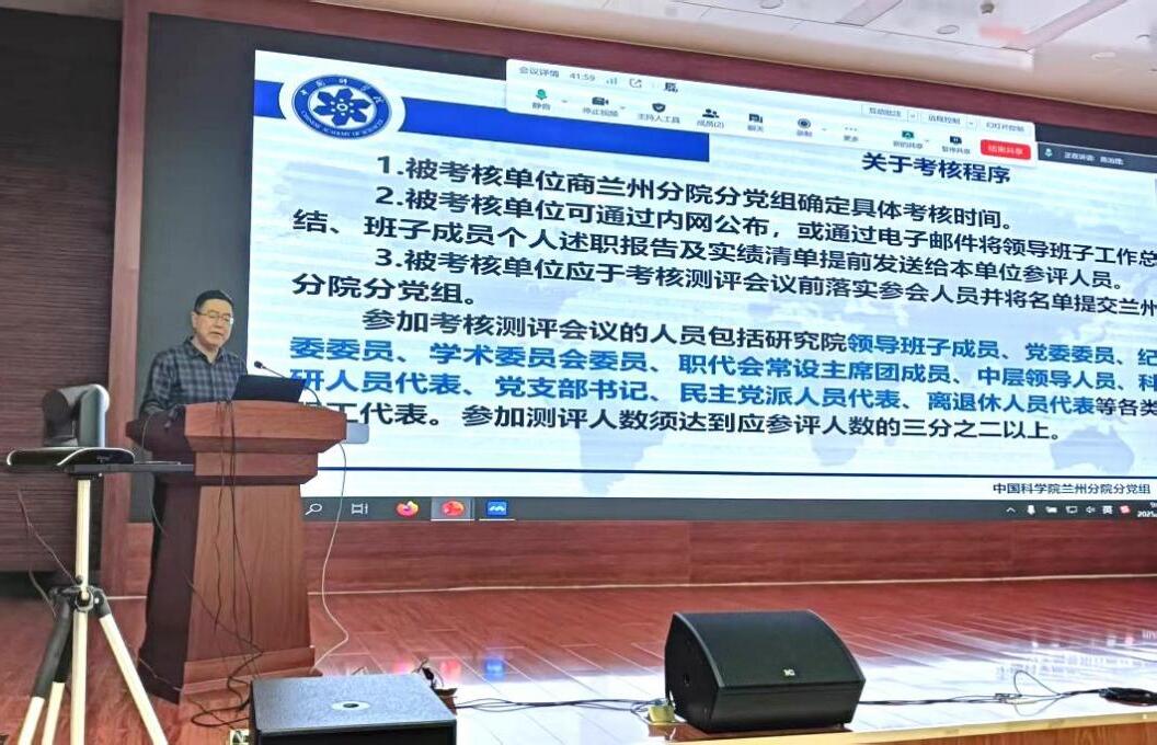 12月29日,中國(guó)科學(xué)院西北生態(tài)環(huán)境資源研究院組織召開領(lǐng)導(dǎo)班子與領(lǐng)導(dǎo)人員2025年度考核工作會(huì)議。西北研究院院長(zhǎng)馮起,黨委書記、副院長(zhǎng)張長(zhǎng)春,副院長(zhǎng)張明義,紀(jì)委書記袁小華,副院長(zhǎng)李宗??;以及黨委委員、紀(jì)委委員、學(xué)術(shù)委員會(huì)委員、職代會(huì)代表、中層干部、科研人員代表、黨支部(總支)書記、民主黨派人員代表、離退休人員代表以及全體職工代表參加會(huì)議。中國(guó)科學(xué)院蘭州分院分黨組成員、紀(jì)檢組組長(zhǎng)、系統(tǒng)單位紀(jì)委書記吳建剛及考核組成員到會(huì)指導(dǎo)。會(huì)議由李宗省主持。