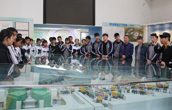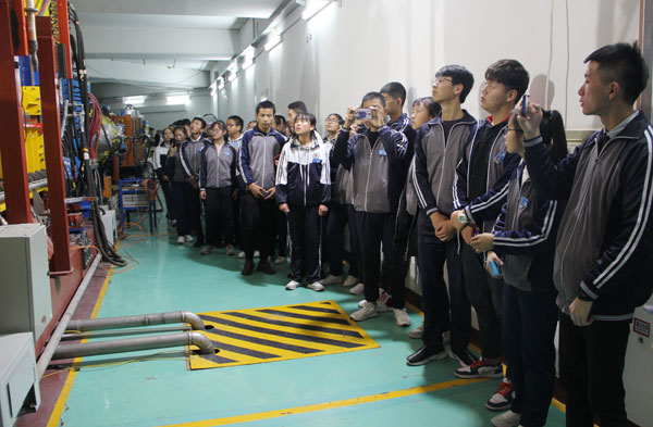 在中科院近代物理研究所,同學(xué)們參觀了蘭州重離子加速器國(guó)家實(shí)驗(yàn)室展廳,通過科研人員的講解了解到蘭州重離子加速器是我國(guó)規(guī)模最大、加速離子種類最多,能量最高的重離子研究裝置,主要技術(shù)指標(biāo)達(dá)到國(guó)際先進(jìn)水平,先后取得了以新核素合成、核質(zhì)量精確測(cè)量、重離子治癌研究等為代表的一批重要科研成果,使我國(guó)重離子物理及交叉學(xué)科研究進(jìn)入國(guó)際先進(jìn)行列。在科研人員的帶領(lǐng)下,同學(xué)們有幸親自走進(jìn)重離子加速器國(guó)家實(shí)驗(yàn)室,近距離對(duì)話科學(xué)大裝置,大家好奇的眼神,激動(dòng)的心情,溢于言表。