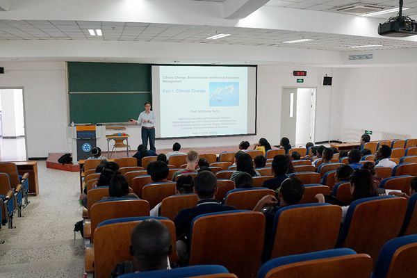 《Overview of Climate Change Science》由國際學(xué)院組織開設(shè),是面向國際留學(xué)生全英文授課的專業(yè)核心課,由來自西北研究院、中國科學(xué)院青藏高原研究所、復(fù)旦大學(xué)、中山大學(xué)的6位專家共同講授。課程主要對氣候變化科學(xué)作系統(tǒng)性概要介紹,使研究生認(rèn)識氣候變化科學(xué)的基本理論體系和主要研究內(nèi)容,掌握氣候變化的重要研究方法和手段,了解氣候變化研究的前沿方向和熱點問題。課程具有如下特色:融合課堂講授、專題講座、分組報告和討論答疑等多種教學(xué)模式;在系統(tǒng)化理論知識講授基礎(chǔ)上,增加氣候變化前沿、學(xué)科發(fā)展歷史和野外科考圖片視頻等多樣教學(xué)內(nèi)容;鼓勵留學(xué)生關(guān)注各自國家和地區(qū)、中國和全球氣候變化研究的進(jìn)展和應(yīng)對氣候變化的行動,培養(yǎng)學(xué)生共同應(yīng)對氣候變化挑戰(zhàn)和構(gòu)建人類命運(yùn)共同體的理念。該課程自2015年開設(shè)以來,已有來自“一帶一路”沿線和歐美等近30個國家500多名留學(xué)生選修該課程,受到留學(xué)生的歡迎和廣泛好評。