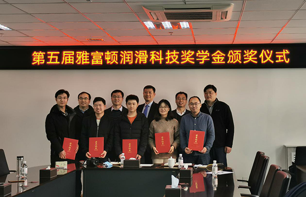 1月27日,中國(guó)科學(xué)院蘭州化學(xué)物理研究所第五屆雅富頓潤(rùn)滑科技獎(jiǎng)學(xué)金頒獎(jiǎng)儀式在青島研發(fā)中心舉行。雅富頓添加劑公司亞太區(qū)技術(shù)總監(jiān)梁克堅(jiān)先生、蘭州化物所相關(guān)部門(mén)負(fù)責(zé)人參加了頒獎(jiǎng)儀式。喻萍、蘇懷剛、鞠超、張立強(qiáng)、白常寧等5名學(xué)生獲2021年度獎(jiǎng)學(xué)金。