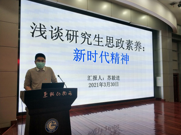 蘇毅進(jìn)研究員作了題為“淺談研究生思政素養(yǎng):新時(shí)代精神”的報(bào)告,介紹了科學(xué)家精神,分享了先進(jìn)典型案例,號召全體研究生同學(xué)用習(xí)近平新時(shí)代中國特色社會主義思想武裝頭腦,增強(qiáng)“四個意識”,堅(jiān)定“四個自信”,堅(jiān)決做到“兩個維護(hù)”,為祖國建設(shè)發(fā)展貢獻(xiàn)自己最大的力量。