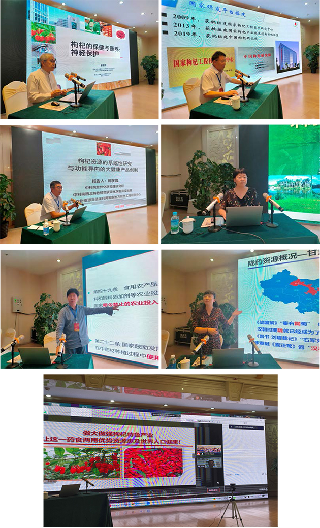 中國科學(xué)院院士、暨南大學(xué)蘇國輝教授,國家枸杞工程技術(shù)中心曹有龍研究員,蘭州化物所邸多隆研究員,中科院華南植物園王瑛研究員,中國醫(yī)學(xué)科學(xué)院藥用植物研究所徐常青研究員,蘭州大學(xué)胡芳弟教授和南京中醫(yī)藥大學(xué)郭盛副研究員分別作了題為“枸杞的保健與康養(yǎng)”“枸杞育種及新品種”“枸杞資源的系統(tǒng)性研究與功能導(dǎo)向的大健康產(chǎn)品創(chuàng)制”“枸杞重要性狀的分子機制及育種應(yīng)用”“枸杞主要病蟲害種類及其發(fā)生規(guī)律與防治現(xiàn)狀”“枸杞大健康產(chǎn)業(yè)之路及含枸杞中藥口服液的開發(fā)”“分類施策,促進枸杞產(chǎn)業(yè)走多元化發(fā)展之路”的報告。