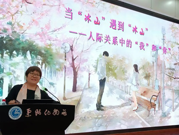 講座邀請?zhí)m州大學(xué)哲學(xué)社會學(xué)院、蘭州大學(xué)心理中心兼職督導(dǎo)師彭賢副教授作了題為“當(dāng)‘冰山’遇到‘冰山’——人際關(guān)系中的‘我’和‘你’”的報(bào)告。報(bào)告圍繞用薩提亞“冰山理論”處理人際關(guān)系、加強(qiáng)建設(shè)性人際互動、處理好分歧和沖突,講授了人際互動中的情緒管理技巧和方法,對正確認(rèn)識和處理人際關(guān)系、掌握調(diào)試和緩解心理壓力的方法具有指導(dǎo)意義,讓青年職工和研究生深刻認(rèn)識到“愛的教育”的重要意義。