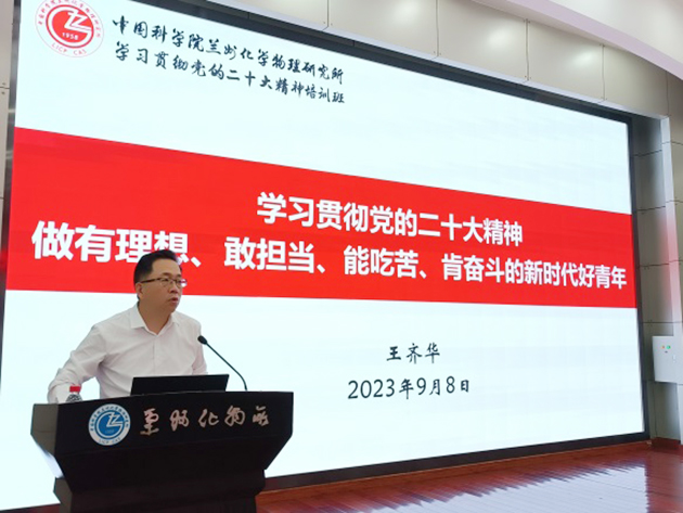 蘭州化物所黨委書記王齊華作了題為“學(xué)習(xí)貫徹黨的二十大精神 做有理想敢擔(dān)當(dāng)能吃苦肯奮斗的新時(shí)代好青年”的專題黨課,并對全體研究生同學(xué)提出希望和要求。希望同學(xué)們以習(xí)近平新時(shí)代中國特色社會(huì)主義思想為指導(dǎo),認(rèn)真學(xué)習(xí)領(lǐng)會(huì)黨的二十大精神、習(xí)近平總書記關(guān)于科技創(chuàng)新的重要論述和指示批示精神。面向世界科技前沿、面向國家重大需求、面向國民經(jīng)濟(jì)主戰(zhàn)場、面向人民生命健康,刻苦鉆研,勇于創(chuàng)新,大力傳承弘揚(yáng)科學(xué)家精神,培養(yǎng)高尚的品格、積淀豐厚的學(xué)養(yǎng)、保持良好的心理狀態(tài),努力成長為對國家、對民族有用的創(chuàng)新人才,把個(gè)人的理想追求融入黨和國家事業(yè)之中,為早日實(shí)現(xiàn)高水平科技自立自強(qiáng)貢獻(xiàn)青春力量和智慧。