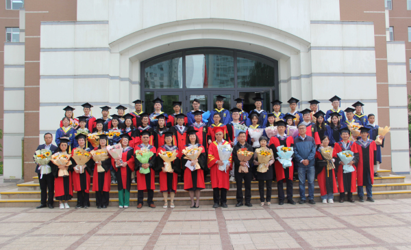 王建萍宣讀了學位授予決定。在大家熱烈的掌聲中,畢業(yè)生們依次上臺,學位評定委員會主席吳志堅為每位畢業(yè)生扶正流蘇、頒發(fā)紀念品并合影留念。