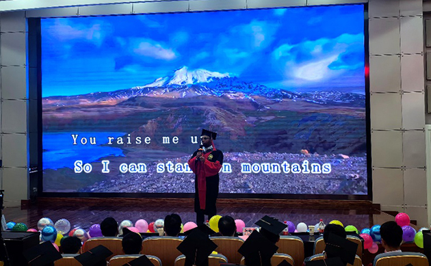 學(xué)生代表演唱了歌曲“和你一樣”“You Raise Me Up”?“我相信”,為畢業(yè)生送上祝福。