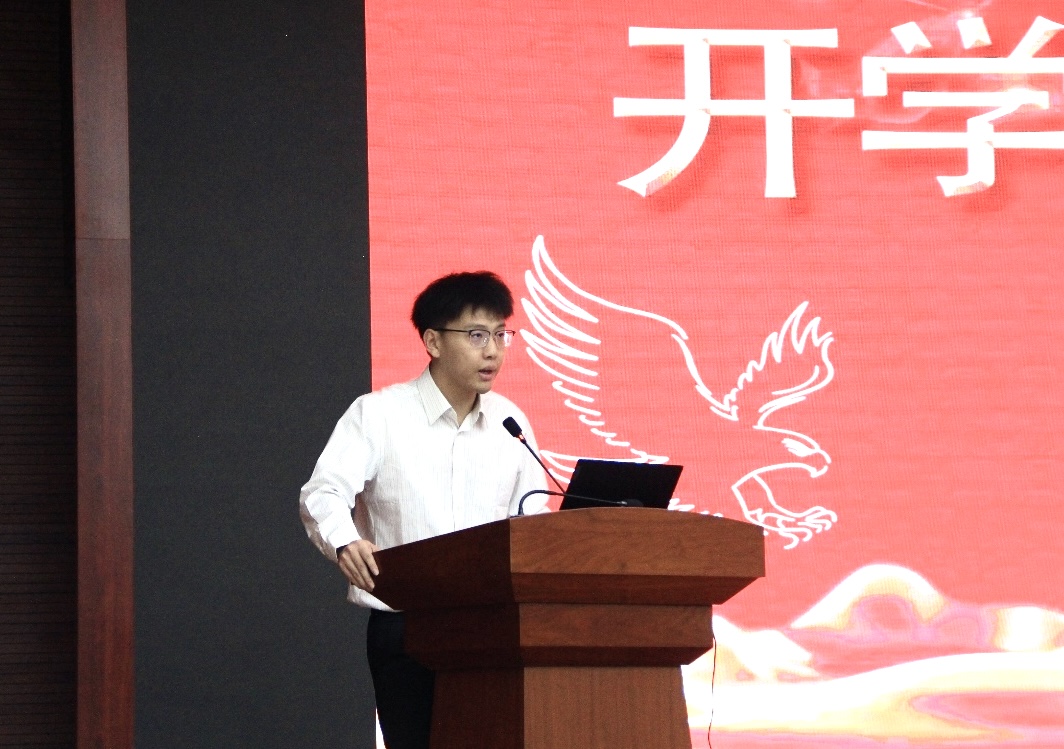 2022級(jí)碩士研究生韋楓代表在讀學(xué)生發(fā)言。他對(duì)老師們的辛勤付出表示感謝,并分享了自己的學(xué)習(xí)感悟,認(rèn)為在求學(xué)生涯中應(yīng)砥礪奮進(jìn),不忘初心,不負(fù)韶華,遇見(jiàn)更好的自己!