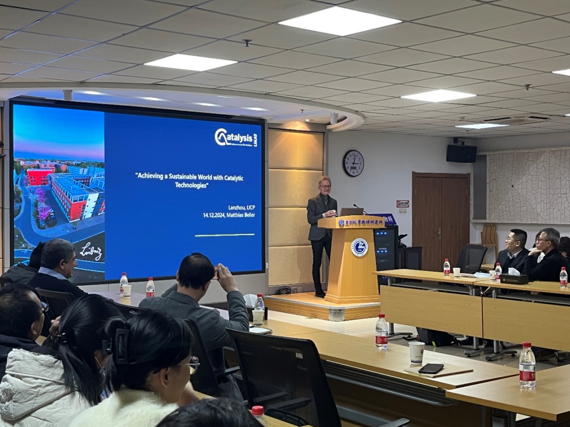 12月14日,德國萊布尼茨催化研究所(LIKAT)Mattias Beller院士應(yīng)邀訪問中國科學(xué)院蘭州化學(xué)物理研究所,并作了題為“Achieving a Sustainable World with Catalytic Technologies”的學(xué)術(shù)報告。