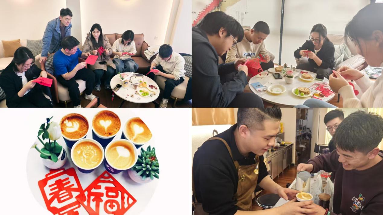 活動(dòng)現(xiàn)場(chǎng),同學(xué)們專注體驗(yàn)剪紙的魅力、興奮展示各自的剪紙成果。現(xiàn)場(chǎng)洋溢著濃厚的節(jié)日氛圍,每一片窗花、每一個(gè)“福”字,每一份新年寄語都承載著大家對(duì)新一年的美好期盼。隨后,大家在咖啡師的現(xiàn)場(chǎng)教學(xué)下投入到咖啡拉花制作,感受咖啡制作的樂趣。