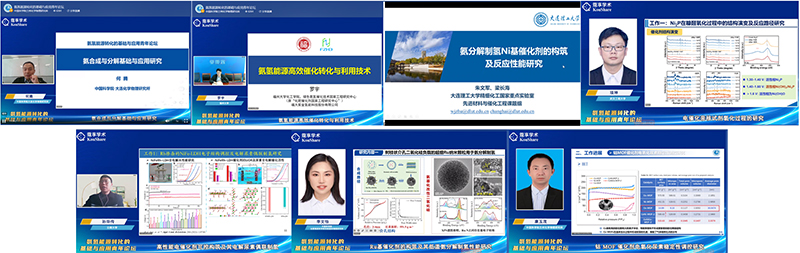 論壇圍繞氨氫能源轉(zhuǎn)化領(lǐng)域的前沿技術(shù)、基礎(chǔ)研究與產(chǎn)業(yè)應(yīng)用,邀請7位青年學(xué)者分別作報告。中國科學(xué)院大連化學(xué)物理研究所的何騰研究員作了題為“氨合成與分解基礎(chǔ)與應(yīng)用研究”的報告,提出了金屬氫化物介導(dǎo)合成氨策略,分享了氨在MgO/Ru催化劑分解制氫的中試研究成果,為氨合成與分解催化劑的設(shè)計及性能提升提供了創(chuàng)新性思路。福州大學(xué)羅宇教授作了題為“氨氫能源高效催化轉(zhuǎn)化與利用技術(shù)”的報告,系統(tǒng)闡述了從催化劑設(shè)計到“安全低溫氨分解制氫-提純-加氫”一體化裝備的研發(fā)歷程,為規(guī)?;瘧?yīng)用提供了技術(shù)支撐。大連理工大學(xué)朱文軍助理研究員作了題為“氨分解制氫鎳基催化劑的構(gòu)筑及反應(yīng)性能研究”的報告,揭示了鎳基催化劑表面NHx物種的脫氫機制,為低成本高效催化劑的開發(fā)指明了方向。武漢工程大學(xué)項坤副教授作了題為“電催化親核試劑氧化過程的研究”的報告,從電化學(xué)角度解析有機分子轉(zhuǎn)化路徑,為小分子高值化利用提供理論依據(jù)。云南大學(xué)孫華傳博士作了題為“高性能電催化劑的可控構(gòu)筑及尿素氧化性能研究”的報告,指出了尿素氧化偶聯(lián)制氫的創(chuàng)新路徑,提出了高性能電催化劑的可控構(gòu)筑方法。中國科學(xué)院合肥物質(zhì)科學(xué)研究院固體物理研究所李文怡特任副研究員作了題為“Ru基催化劑的構(gòu)筑及其低溫氨分解制氫性能研究”的報告,針對低溫氨分解制氫的瓶頸,提出Ru基催化劑優(yōu)化策略。蘭州化物所康玉茂助理研究員作了題為“鈷MOF催化劑電氧化尿素穩(wěn)定性調(diào)控研究”的報告,深入探討了基于鈷MOF催化劑結(jié)構(gòu)形貌調(diào)控、提升電催化氧化尿素活性和穩(wěn)定性,為發(fā)展尿素氧化催化劑提供了新思路。